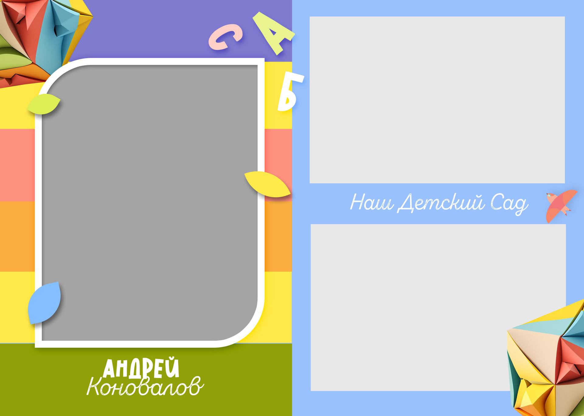 Обратите внимание, фотографии детей в макетах взяты для образца, альбомы выше приведены в ознакомительных целях дизайна. Обращаем внимание на рисунки, шрифты, картинки, само оформление будущего альбома.